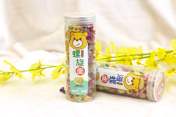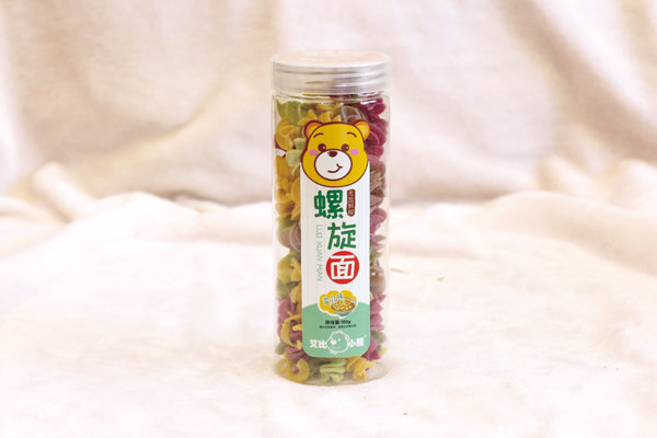 艾比小熊面條系列按造型分,有果蔬面、螺旋面、卡通面和海螺面;按口味分,有南瓜、混合、胡蘿卜、菠菜、甜菜等口味,以天然小麥粉為原料,小麥粉有著豐富的淀粉、蛋白質(zhì)、粗纖維、脂肪油、蛋白質(zhì)酶及微量元素等