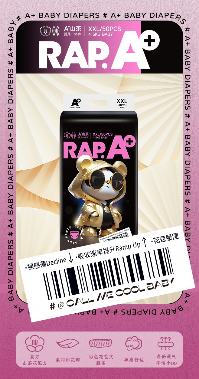 A+山茶紙尿褲/拉拉褲,復(fù)方山茶花配方,萃取天然山茶精華,貼心呵護(hù)寶寶嬌嫩肌膚;柔軟細(xì)膩,高彈力,不勒肚,給寶寶花朵包裹般的舒適感;凹凸透氣表層,透氣性能大大提升,更快釋放濕氣與熱氣;5000萬呼吸微孔,循環(huán)排濕散熱,不悶小PP;4cm加高護(hù)圍,雙側(cè)立體隔邊,避免尿液側(cè)漏。